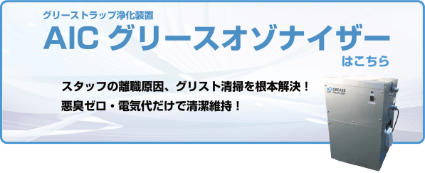 全国に多数店舗を持つラーメンチェーン店様にグリーストラップ浄化装置グリースオゾナイザーを設置しました。スタッフの清掃軽減、グリーストラップが厨房内の店舗では… -