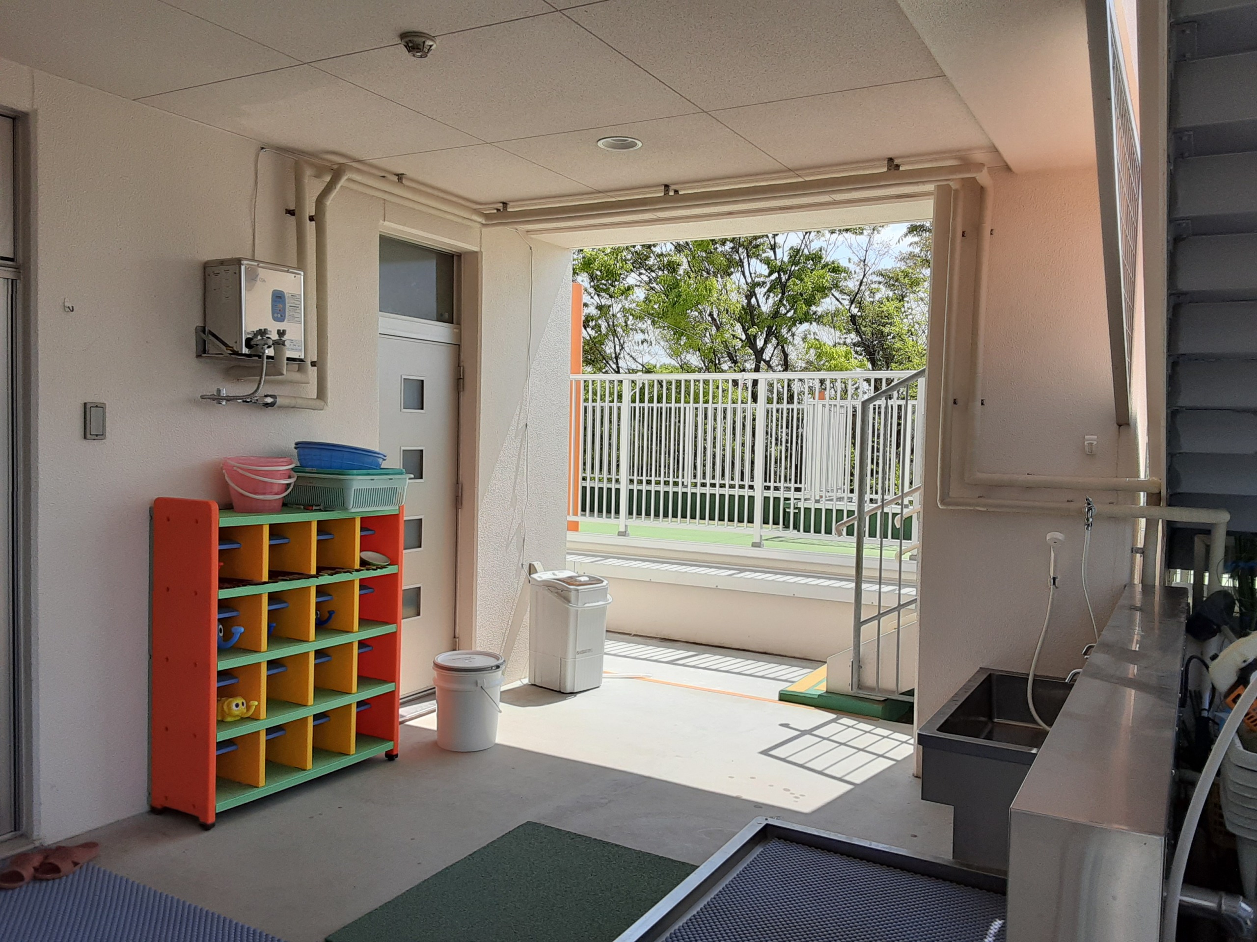 保育園にオゾン水生成器を設置しました。給食室内と手洗い場、シャワーからオゾン水が出ます。