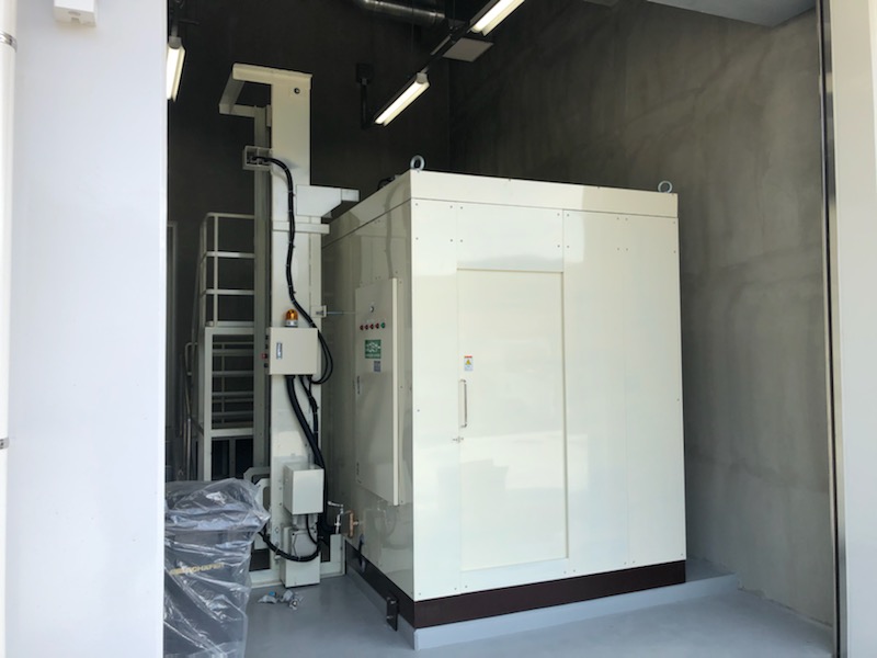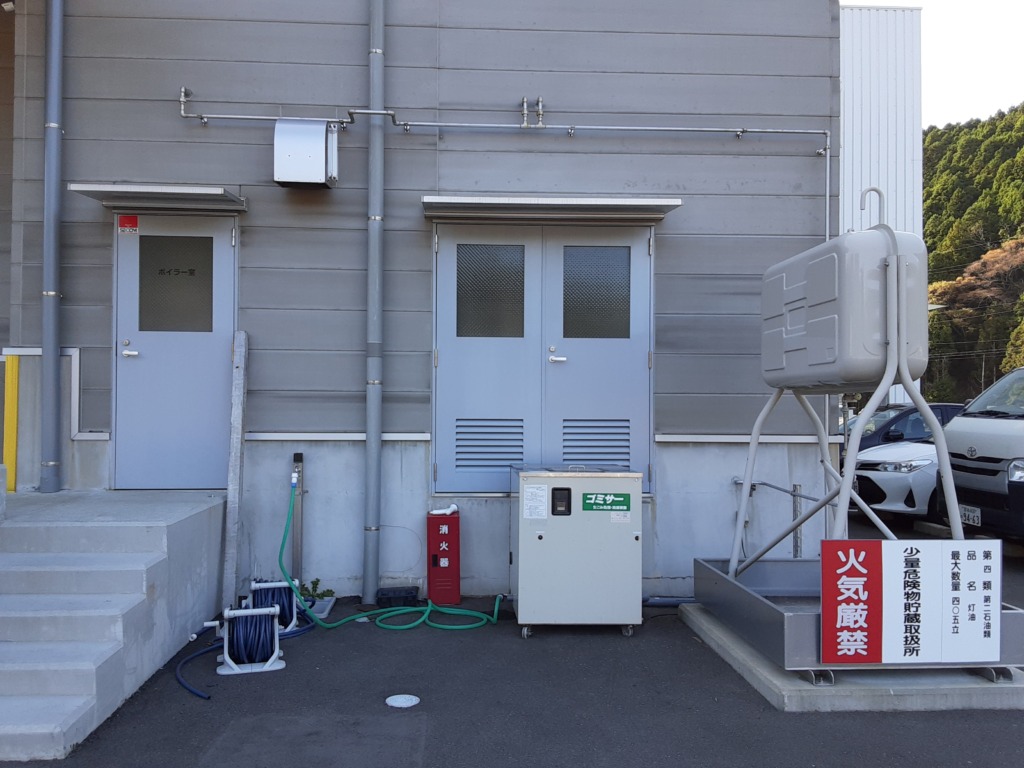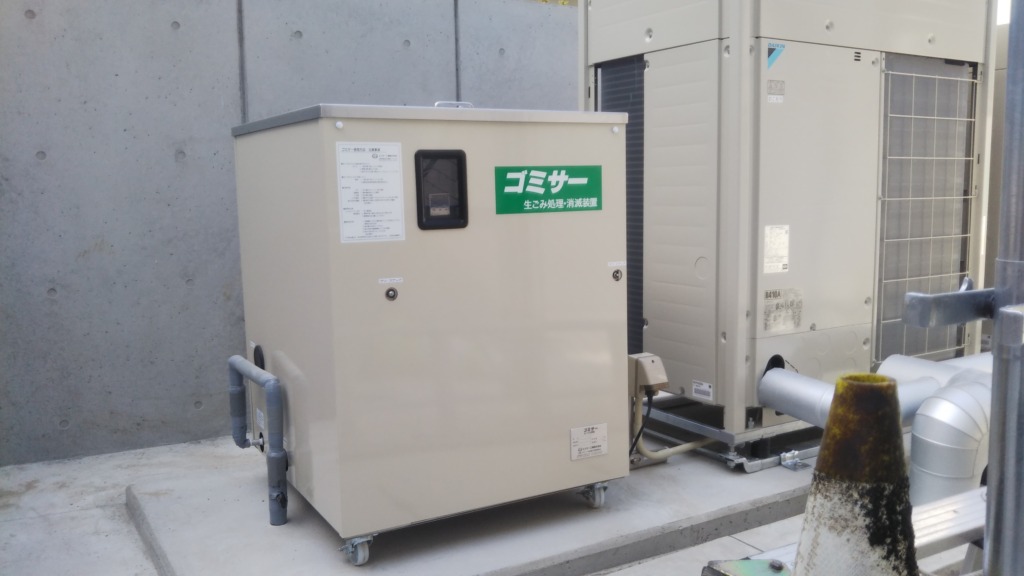 愛知県にある老人施設に業務用生ごみ処理機ゴミサーを設置しました。2F厨房のベランダに設置しています。 -
