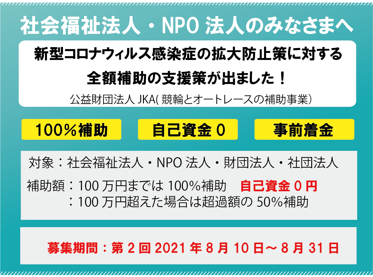 今回は新型コロナ対策の設備の導入あるいは増設を検討されている方に、とっておきの8月補助金情報をお知らせしたいと思います。