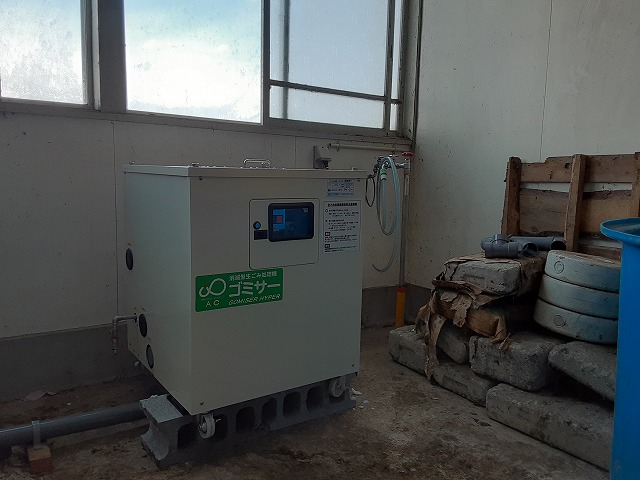 青森県にあるN加工様に消滅型・業務用生ごみ処理機ゴミサーを設置しました。他社消滅型との比較検討で、ゴミサーを採用して頂きました。 -