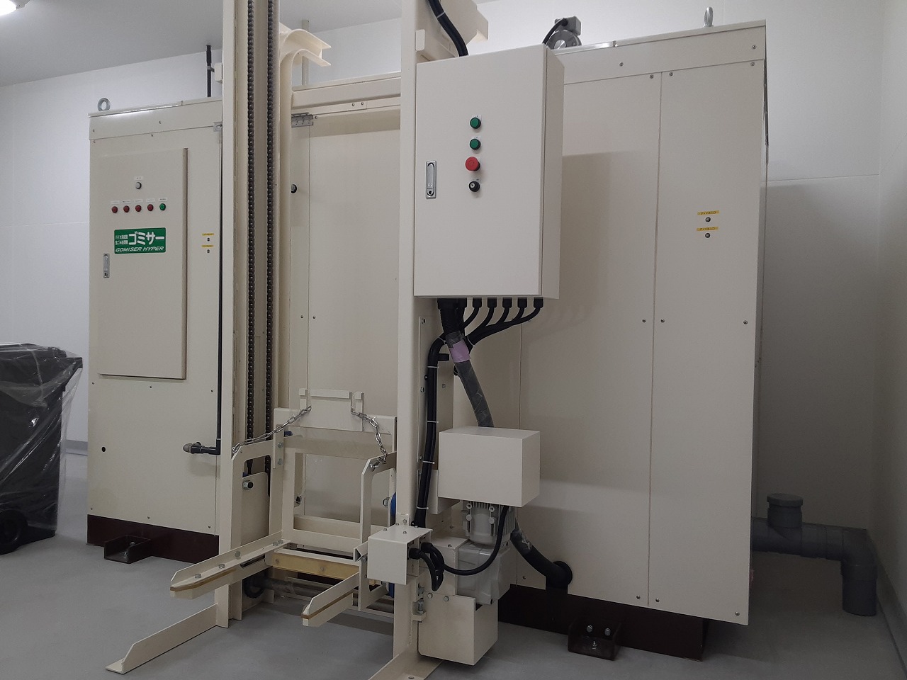 静岡県にある植物工場B様に業務用生ごみ処理機ゴミサーGH250、GH150型設置しました。 広い工場内に、250kg処理、150kg処理の2台を導入頂きました。 業務用生ゴミ処理機生ゴミ処理機設置事例食品加工工場